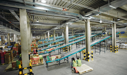 凯时的i-G5智能箱式输送平台和高速滑块分拣机,在WMS系统的指挥下,最高可满足16000单/小时的分拣作业需求。让当天一早抵达的货品,最快当天下午就能配送到前方的超市网点。快速卸货平台的设立,大大缩短了货到之后的盘点输送入库的作业时间。